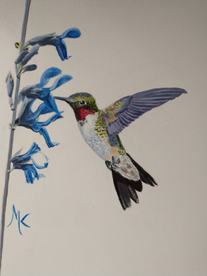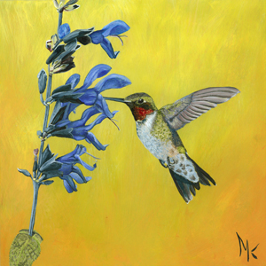 Ruby-throated Hummingbird & Black and Blue Salvia
