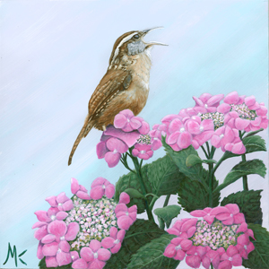 Carolina Wren, Bigleaf/Lacecap Hydrangea 'Fasan'